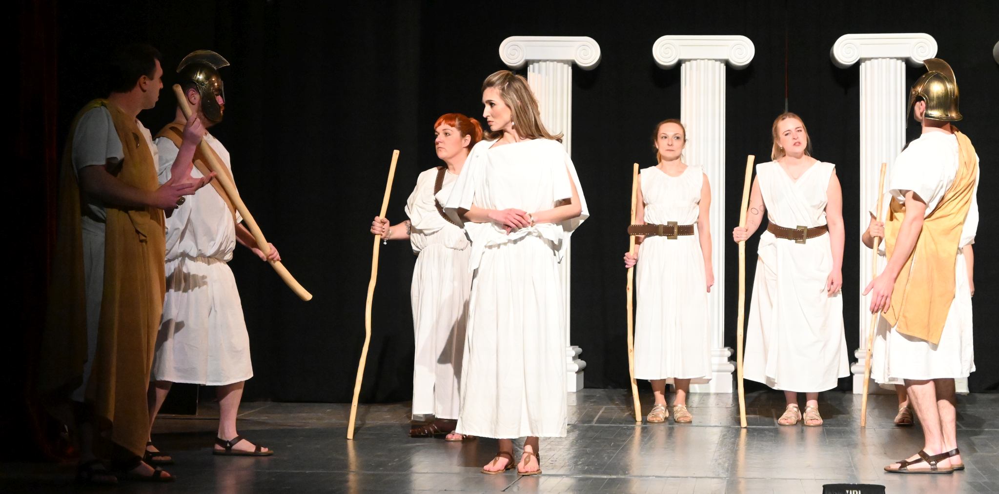 Podsjetimo, predstava s antiratnom porukom, starogrčkog komediografa Aristofana, u režiji gostujuće suradnice Nikoline Do (Nikolina Kuenlin), premijerno je odigrana 24. ožujka, pa odigrana još dvije večeri, i time se JAK nakon višegodišnje stanke vratio na scenu.