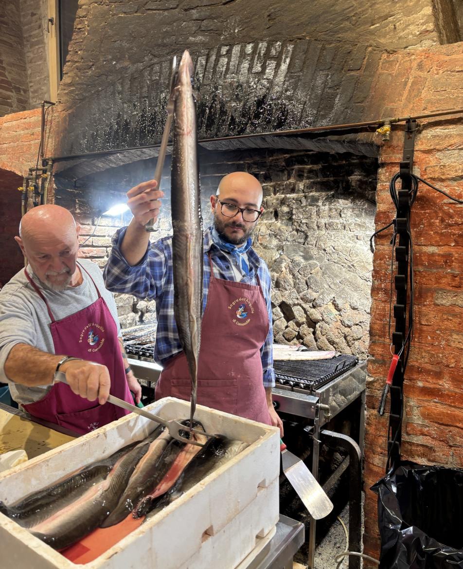 Posjet delegacije Cresa uklopljen je u tamošnju proslavu, Feštu od jegulja ("Sagra dell'Anguilla"), a protokol je održan u Ugostiteljsko-hotelijerskoj školi "Remo Brindisi", gdje se okupljenima obratila ravnateljica škole Pierlia Stimolo, zatim gradonačelnik Pierluigi Negri, a uime Odbora za suradnju s jedinicama lokalne samouprave Gradskog vijeća Grada Cresa, Sonja Pokupec Salković. Ravnatelj creske OŠ Frane Petrića, Josip Pope, govorio je o projektima koje provodi škola, poput vlastite proizvodnje maslinovog ulja i izrade trojezične slikovnice. O mogućnostima proširenja suradnje dva grada govorio je Emanuele Mari, pročelnik za međunarodne odnose, a Alessandro Menegatti, organizator Fešte od jegulja, predstavio je projekt "Festina Lente" u kojemu su učenici škole "Remo Brindisi" radili u društvu nagrađivanih kuhara. U nastavku programa održan je posjet nekadašnjoj tvornici za preradu ribe "Manifattura dei Marinati", muzej slikara Rema Brindisija te novi vidikovac.