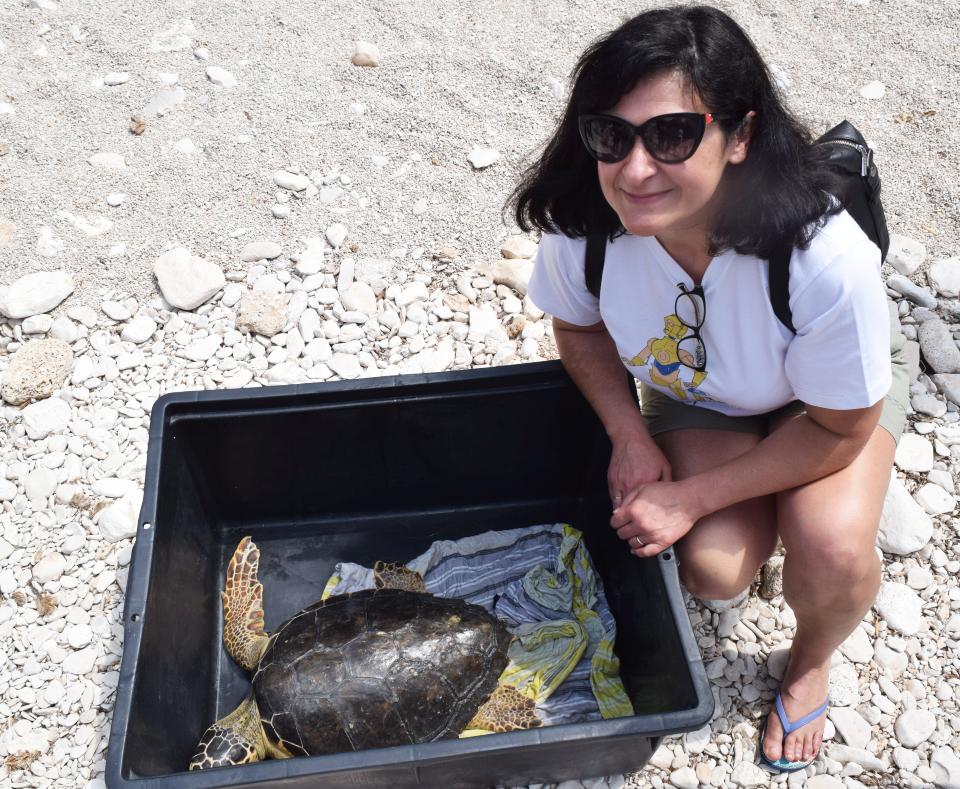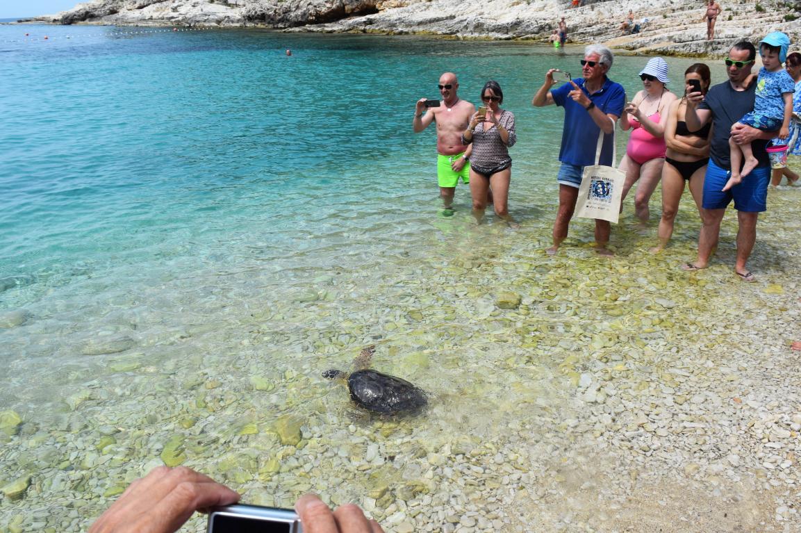 "Kornjača je bila općenito slaba, obrasla vitičarima, s infekcijom dišnoga sustava. Dobila je infuziju, prevezli smo je na Lošinj, a uzorak poslali Veterinarskom institutu, te je utvrđena prisutnost parazita. Primala je terapiju, a potom je već more bilo prehladno, pa smo je odlučili zadržati u oporavilištu do sada, kada je toplije, a temperatura mora 19 stupnjeva. Za praćenje je dobila metalne oznake, a ne odašiljač. Procijenili smo da je sada sposobna za samostalan život, a u posljednje vrijeme bila je već aktivna i hranili smo je tako da mora sama hvatati hranu, a ne izravno u usta", pojasnila je Tina Belaj, veterinarka "Plavog svijeta".