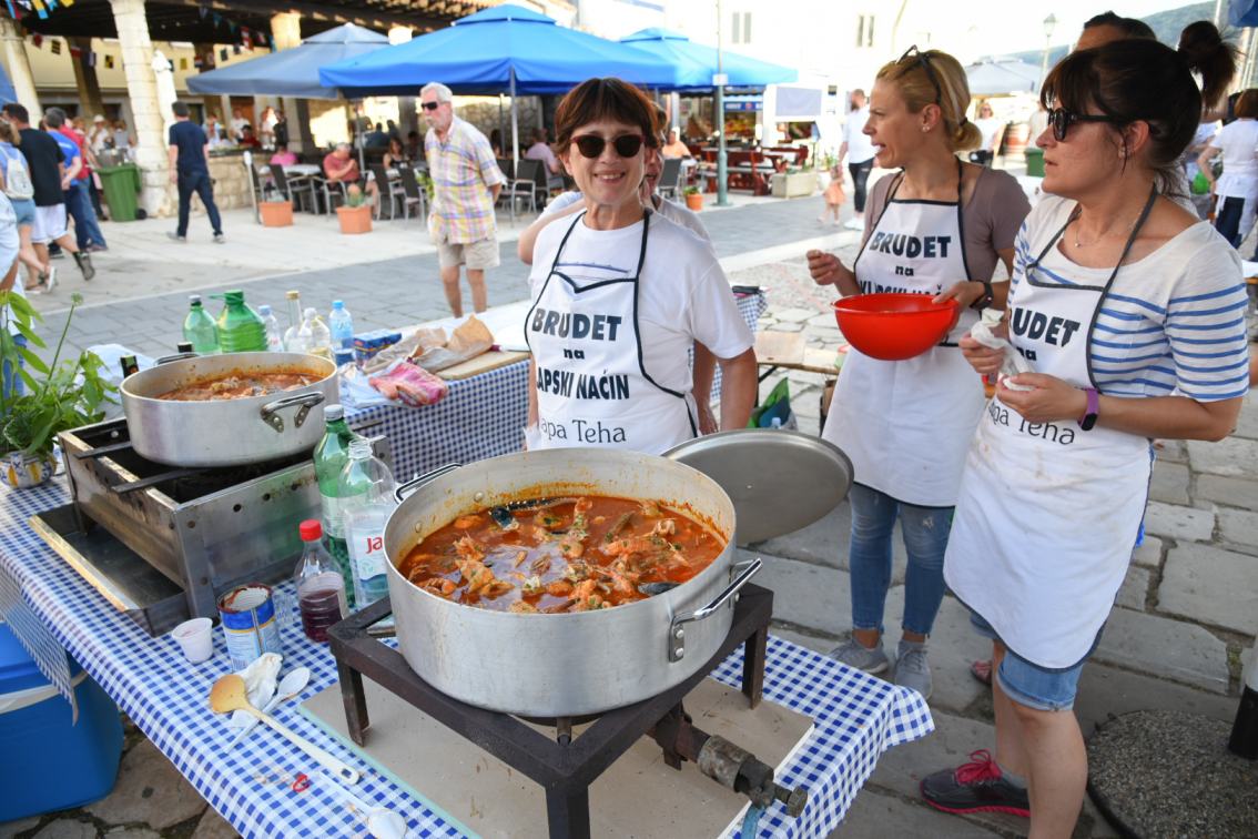 Po obavljenom vaganju ulova natjecatelja na Prvenstvu sjevernog Jadrana u podvodnom ribolovu, na glavnom gradskom trgu počela je "Brudetijada", priredba tradicije dulje od samog "Creskog kaića", u kojoj se razna društva natječu i - znatno više - zabavljaju pripremajući brudet. Prvo mjesto, dobivši jednak broj bodova žirija, podijelile su članice klape "Teha" i ekipa Udruge umirovljenika Cresa, a kuhalo je devet ekipa.